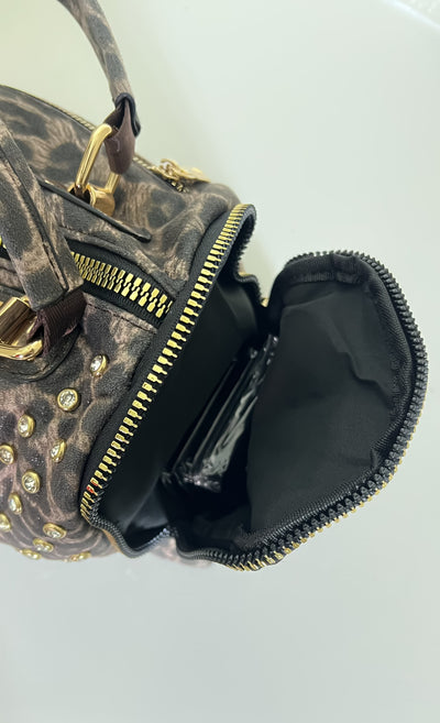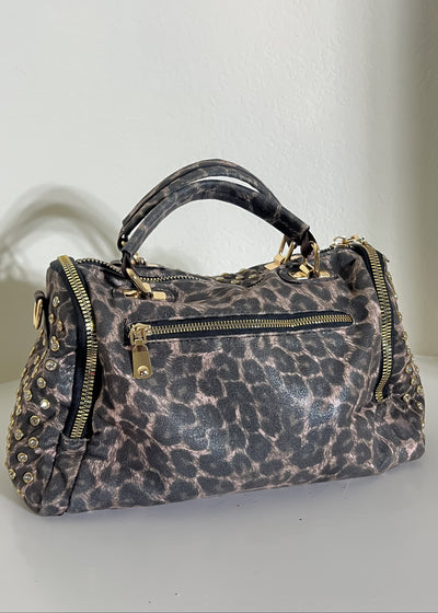 Designed with heavy gold hardware & gold incrusted rhinestones followed by a soft but sexy leopard print all over. SPOTTÉ features